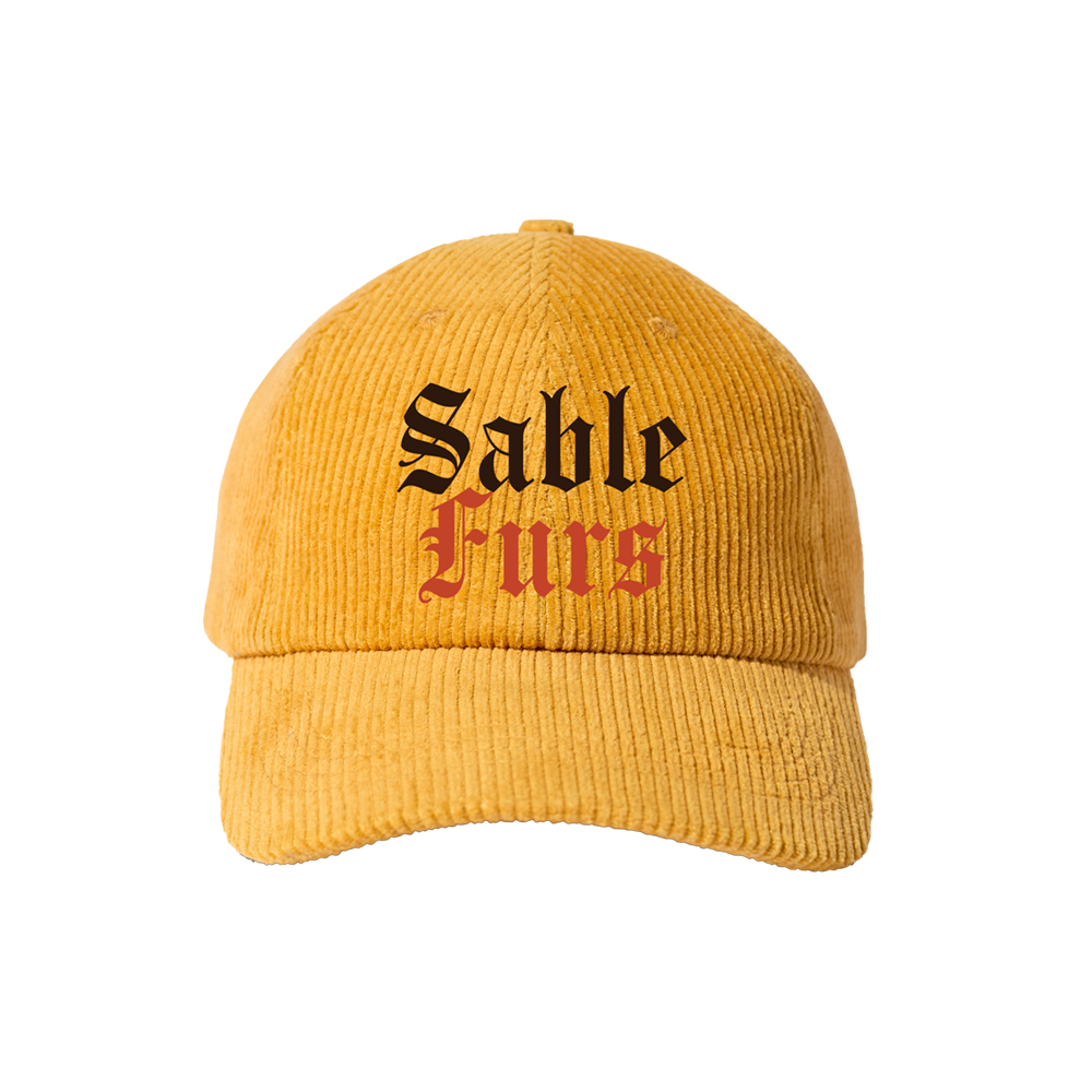 Sun yellow dad hat with Sable Furs embroidered on the front