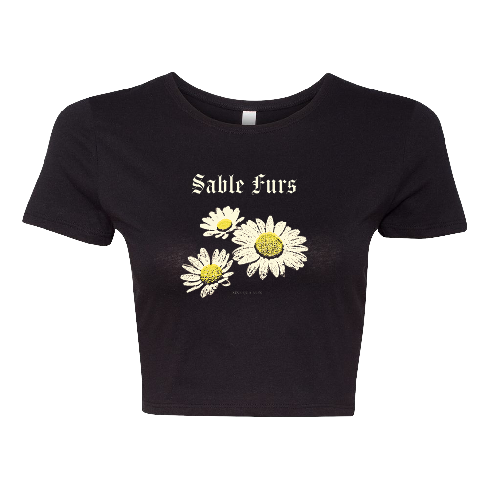 Black cropped tee with the Sable Furs Daisies design printed on the front