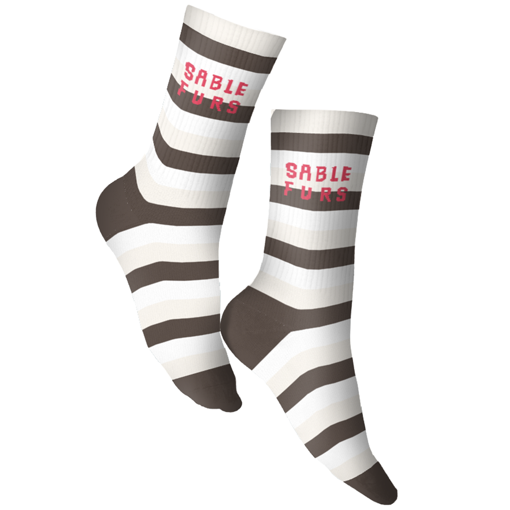 Premium-quality, fully custom woven socks featuring athletic ribbing on the leg, extra cushioning in the footbed, and built-in arch support for maximum comfort